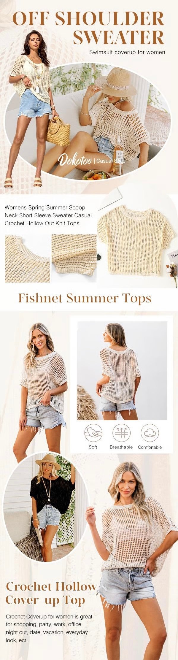 ALLURING MESH DETAILS – The hollow-knit design offers subtle peek-through elements while maintaining coverage. This artful balance of reveal and conceal adds a captivating touch to your everyday look.