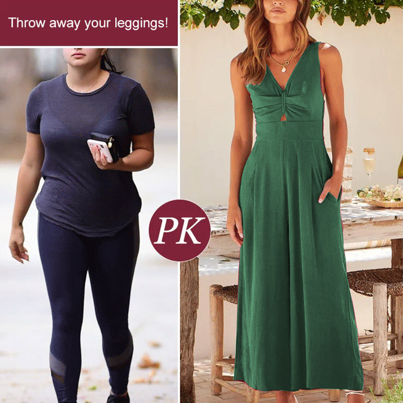 Cutout V-Neck Women's Wide-Leg Jumpsuit