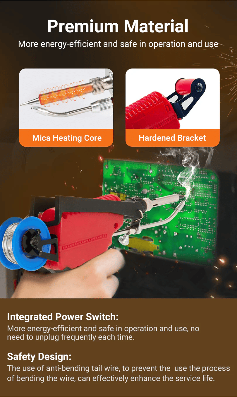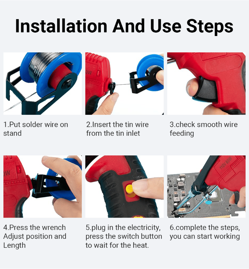 Whether for home repairs or industrial applications, our welding gun provides you with an exceptional welding experience. Efficient, precise, and durable, it is your reliable assistant for all welding tasks. Easy to operate and quick to heat up, making every weld smoother and more efficient.