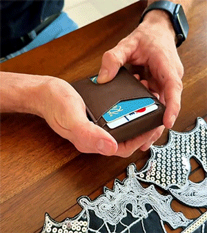 Compared to regular wallets and purses made from leather, our cases protect cards from illegal data theft, so called RFID-Scanning. (RFID-Radio Frequency Identification)