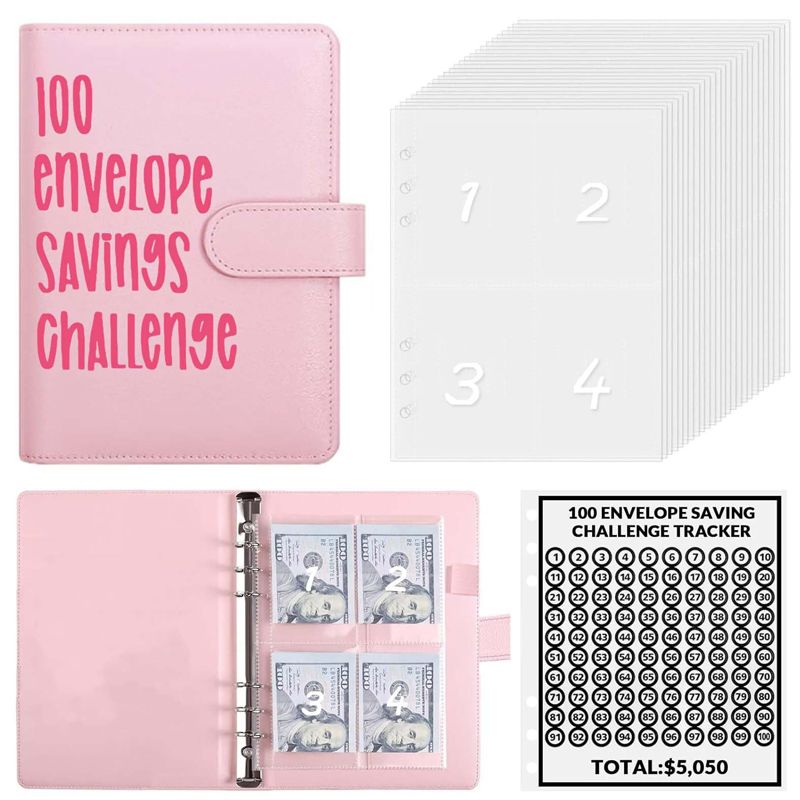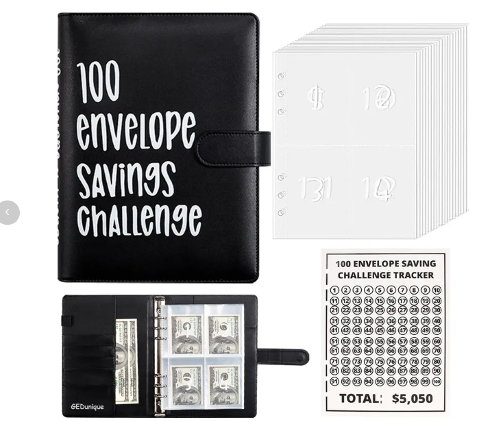🎁A great way to start saving! 🎉 The 100 Envelope Challenge Kit comes with an A5 binder case with card slots, a cash wallet, and a stainless steel binder.💸