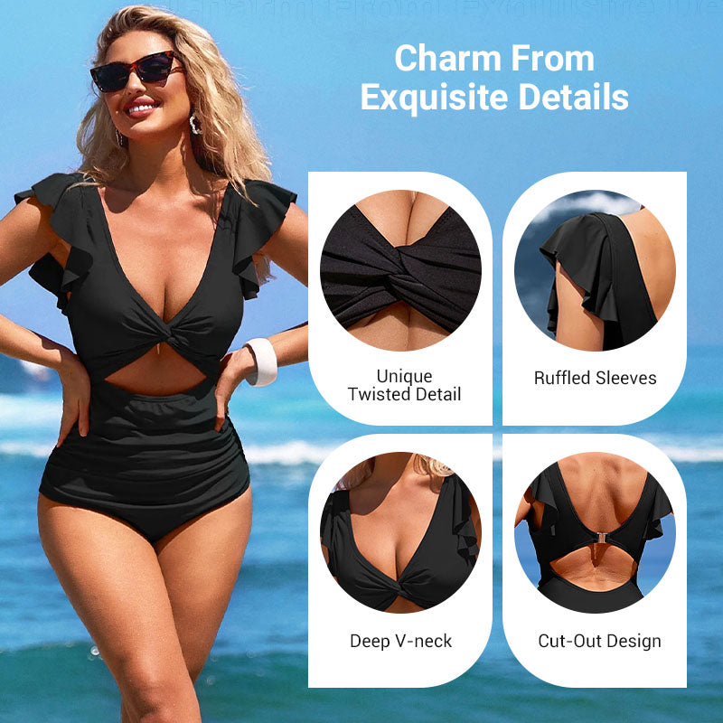๐ 68% OFF NOW! ๐ Sexy Ruffled One-Piece Swimsuit โ Ruffle Detail, Tummy Control & Vibrant Colors ๐