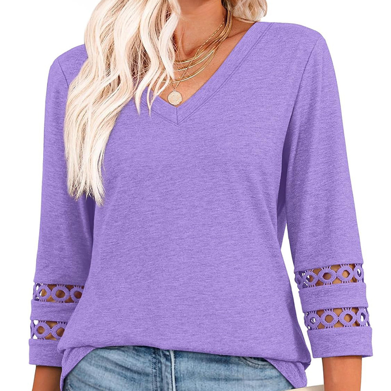 This T-shirt adds a touch of elegance to your everyday look or special occasions. This three-quarter sleeve women's top is versatile and effortlessly wearable in spring and fall. It's incredibly soft and breathable for a comfortable, next-to-skin fit.