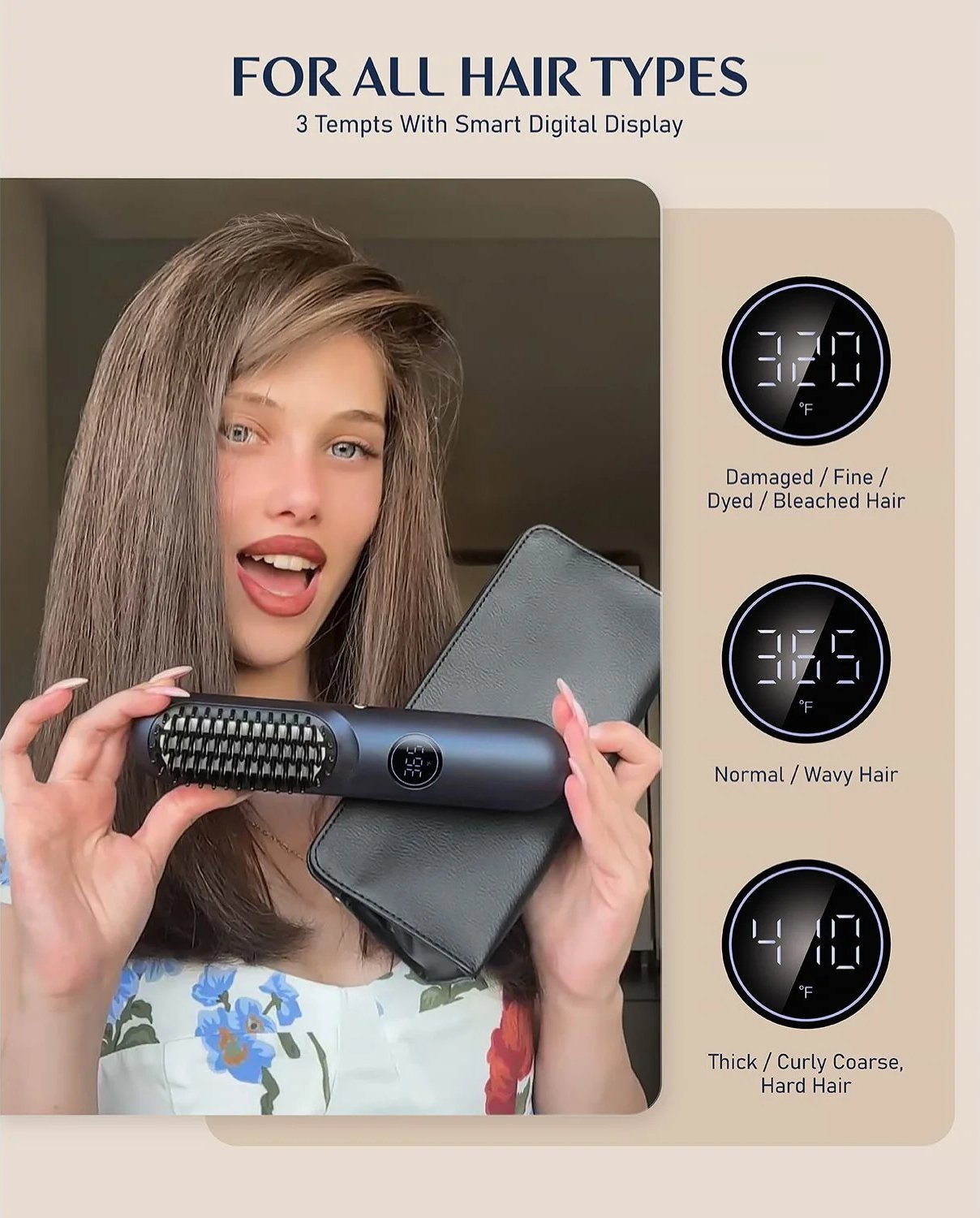 CONVENIENT WIRELESS DESIGN: Forget the hassle of cords - this hair straightening comb operates wirelessly for maximum portability and freedom of movement. The Type-C charging port ensures a fast, efficient recharge.