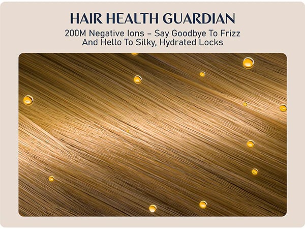 199 MILLION NEGATIVE IONS: Infuses your hair with 199 million negative ions, locking in moisture and leaving your locks frizz-free, shiny, and healthy-looking.